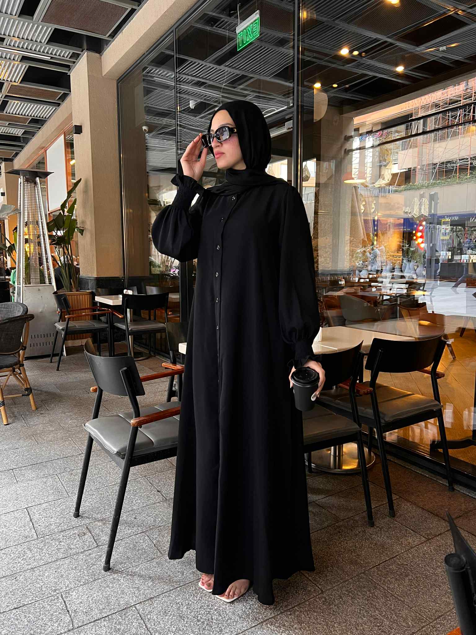 Elegance meets comfort in the Aamnah Abaya, crafted from premium crepe fabric with its soft drape and lightweight feel.